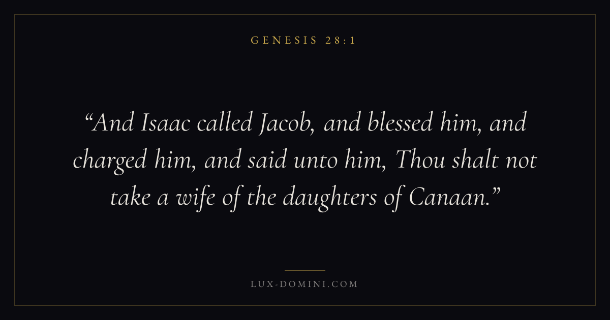 And Isaac called Jacob, and blessed him, and charged him, and said unto him, Thou shalt not take a wife of the daughters of Canaan.