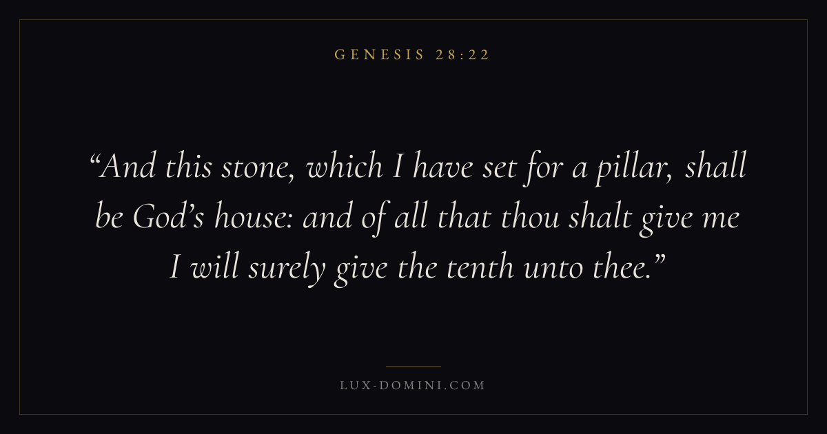 And this stone, which I have set for a pillar, shall be God’s house: and of all that thou shalt give me I will surely give the tenth unto thee.