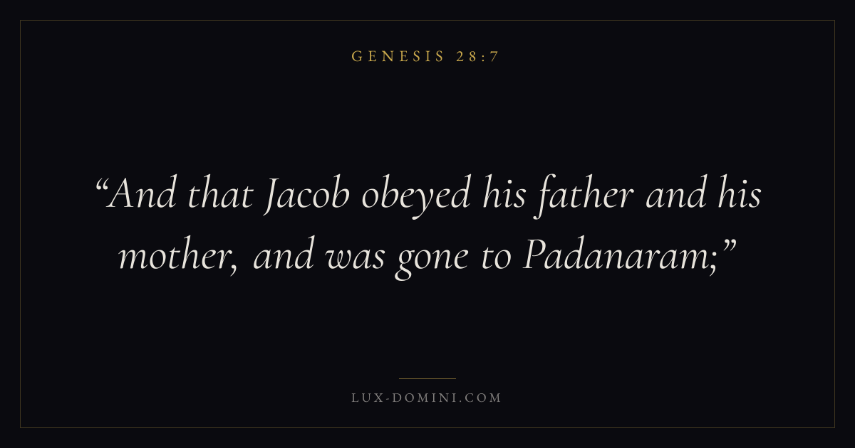 And that Jacob obeyed his father and his mother, and was gone to Padanaram;