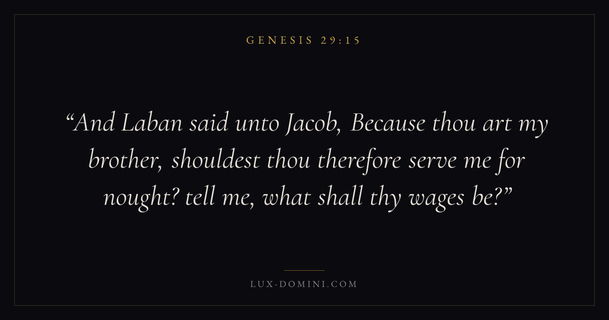 And Laban said unto Jacob, Because thou art my brother, shouldest thou therefore serve me for nought? tell me, what shall thy wages be?