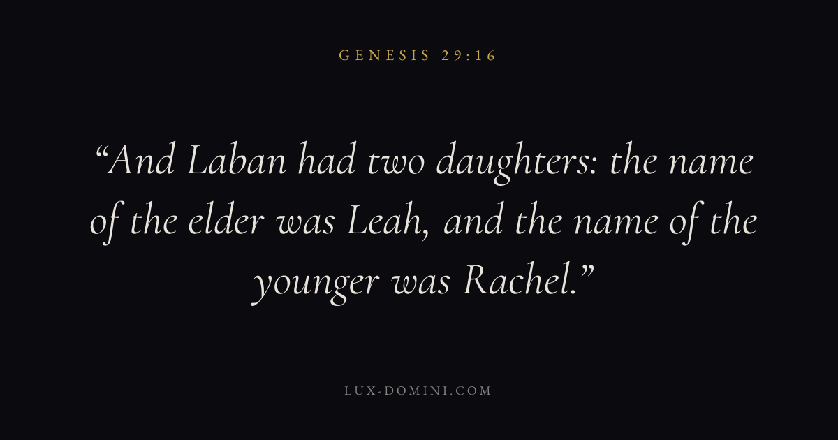 And Laban had two daughters: the name of the elder was Leah, and the name of the younger was Rachel.