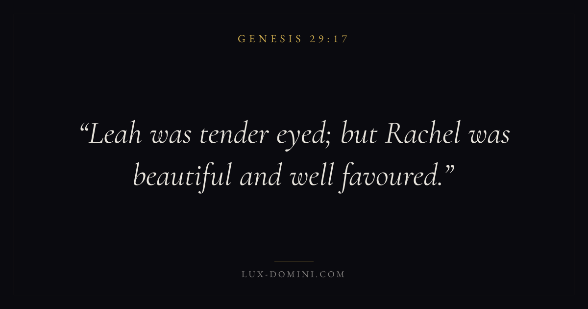 Leah was tender eyed; but Rachel was beautiful and well favoured.