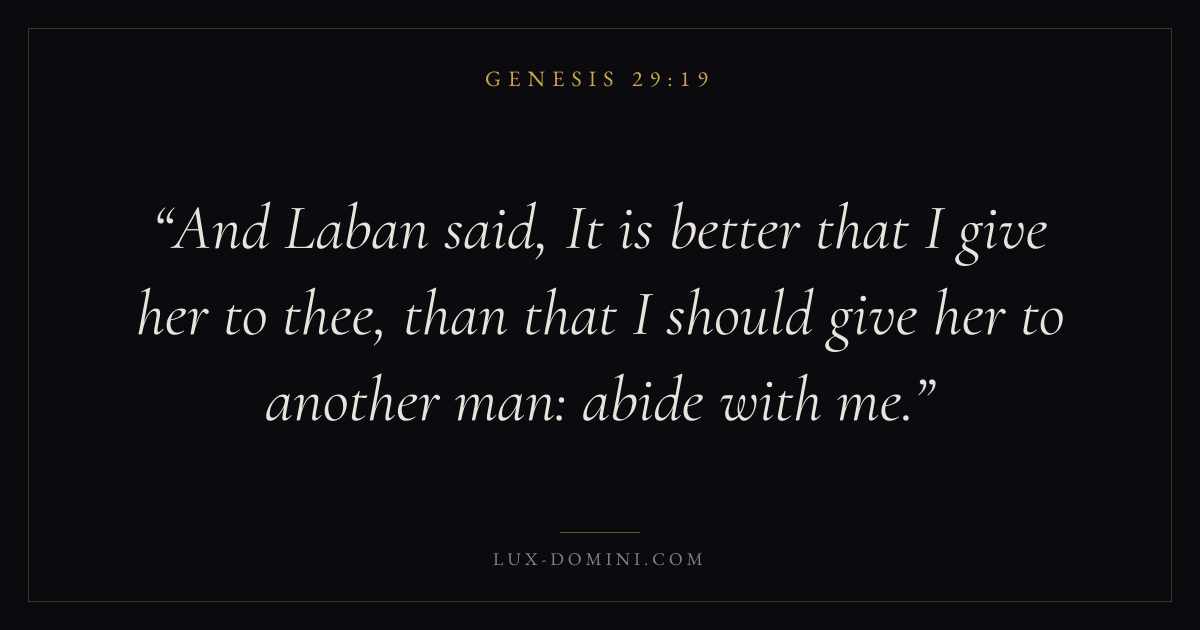 And Laban said, It is better that I give her to thee, than that I should give her to another man: abide with me.