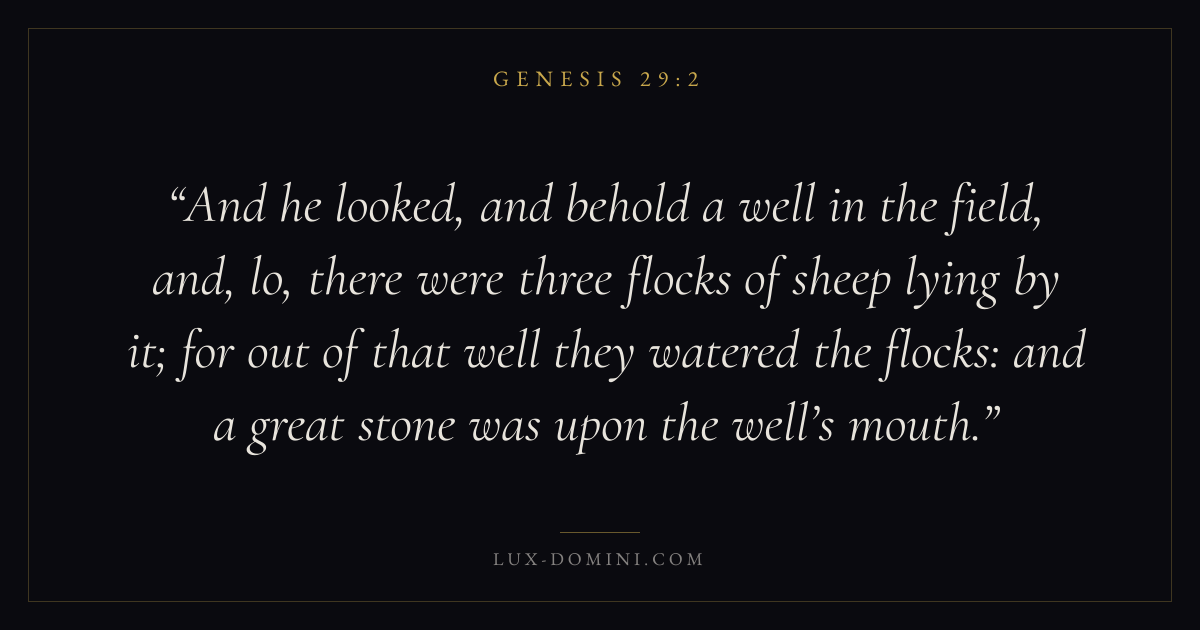 And he looked, and behold a well in the field, and, lo, there were three flocks of sheep lying by it; for out of that well they watered the flocks: and a great stone was upon the well’s mouth.