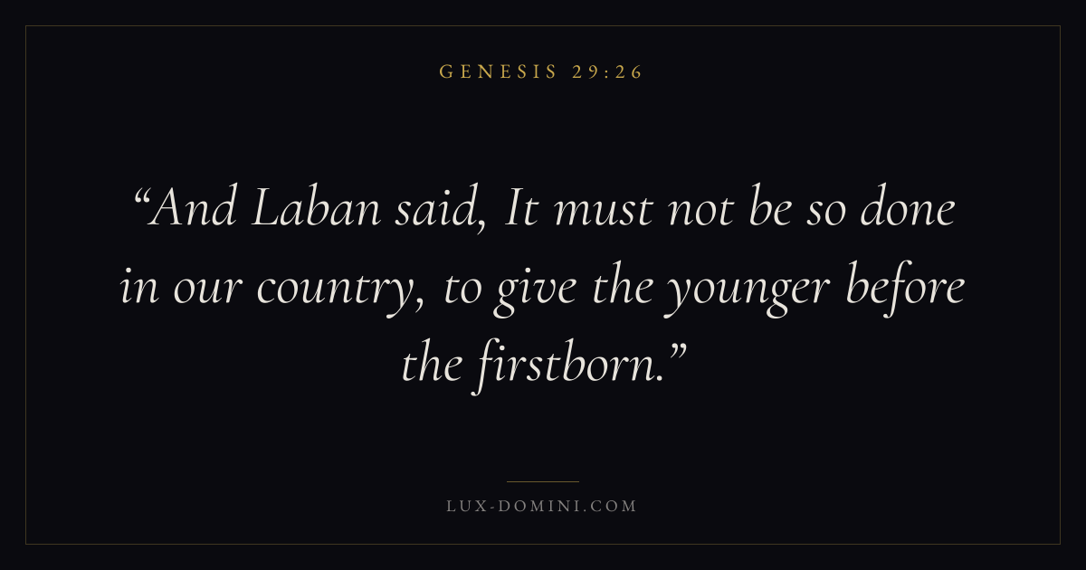 And Laban said, It must not be so done in our country, to give the younger before the firstborn.