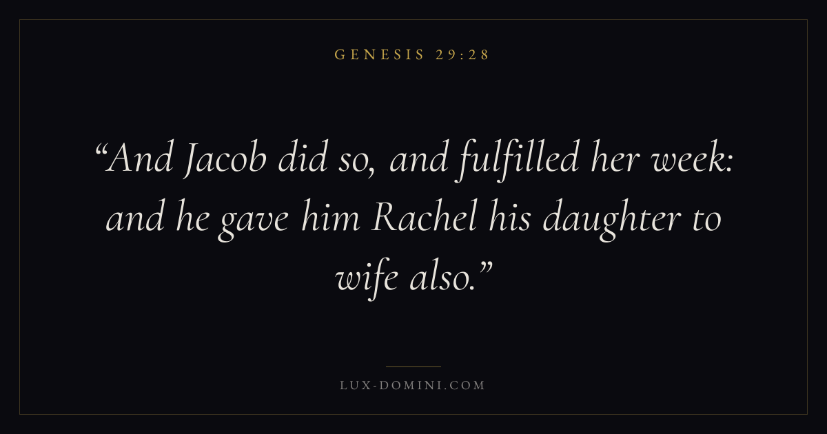 And Jacob did so, and fulfilled her week: and he gave him Rachel his daughter to wife also.