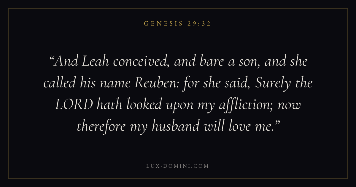 And Leah conceived, and bare a son, and she called his name Reuben: for she said, Surely the LORD hath looked upon my affliction; now therefore my husband will love me.