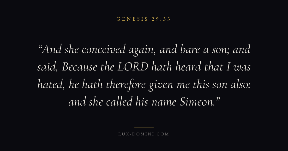 And she conceived again, and bare a son; and said, Because the LORD hath heard that I was hated, he hath therefore given me this son also: and she called his name Simeon.