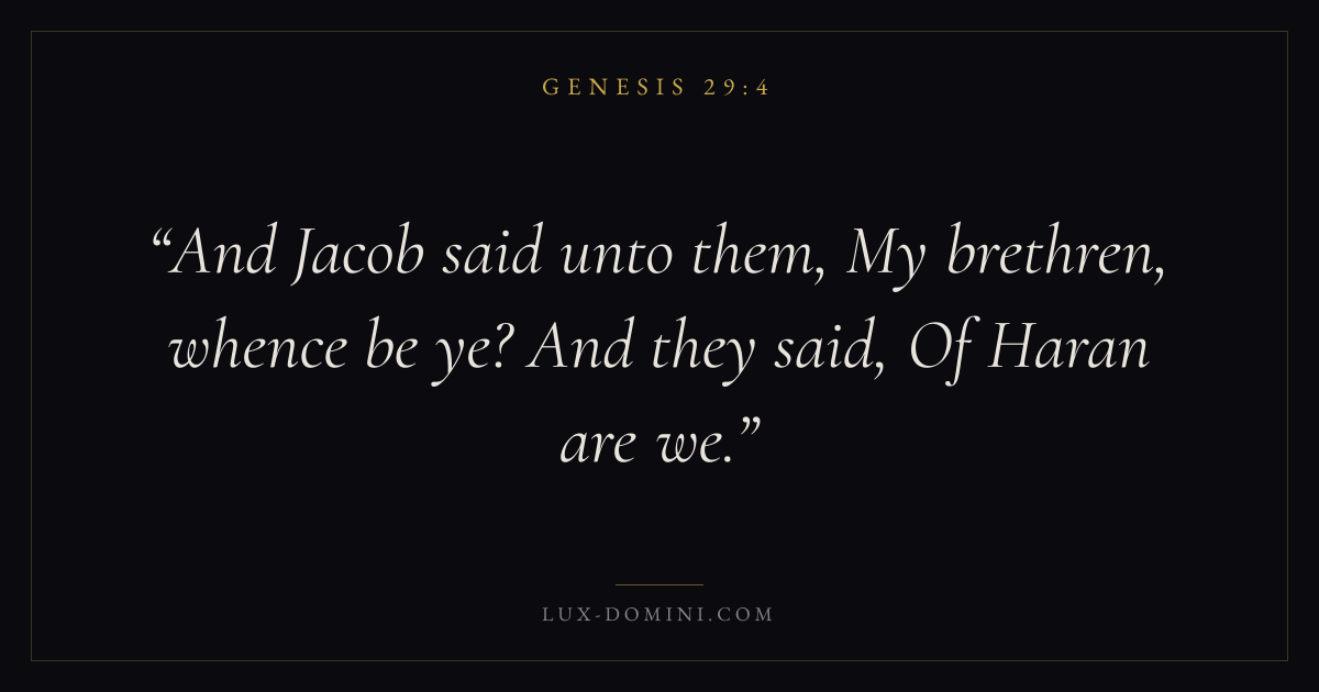 And Jacob said unto them, My brethren, whence be ye? And they said, Of Haran are we.