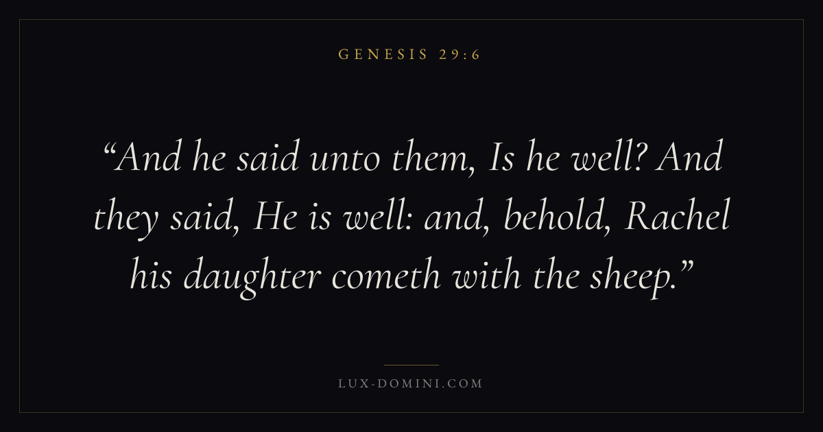 And he said unto them, Is he well? And they said, He is well: and, behold, Rachel his daughter cometh with the sheep.