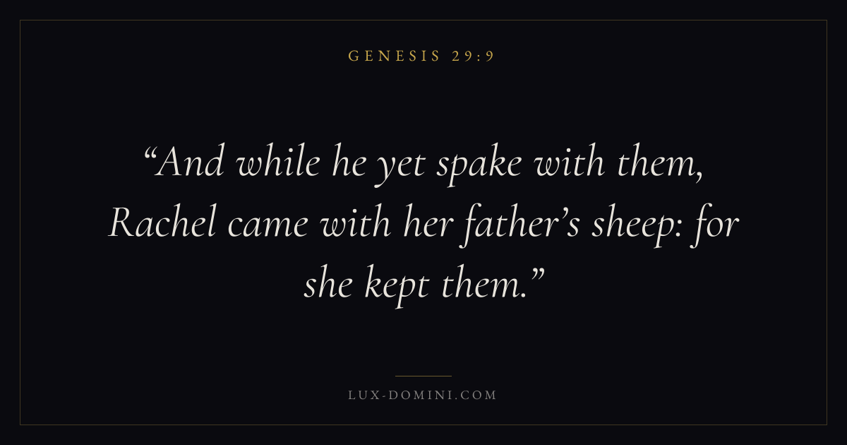 And while he yet spake with them, Rachel came with her father’s sheep: for she kept them.