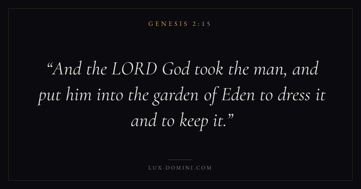 And the LORD God took the man, and put him into the garden of Eden to dress it and to keep it.