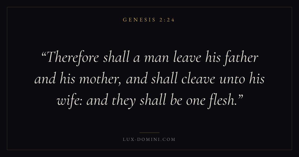 Therefore shall a man leave his father and his mother, and shall cleave unto his wife: and they shall be one flesh.