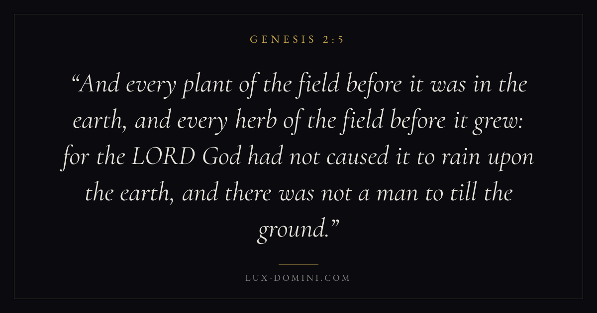And every plant of the field before it was in the earth, and every herb of the field before it grew: for the LORD God had not caused it to rain upon the earth, and there was not a man to till the ground.