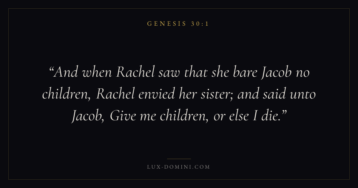 And when Rachel saw that she bare Jacob no children, Rachel envied her sister; and said unto Jacob, Give me children, or else I die.