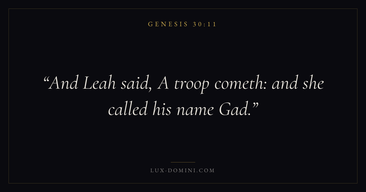 Fortune; luck. (1. ) Jacob’s seventh son, by Zilpah, Leah’s handmaid, and the brother of Asher ( Gen. 30:11-13 ; 46:16 , 18). In the Authorized Version of 30:11 the words, “A troop cometh: and she called,” etc.