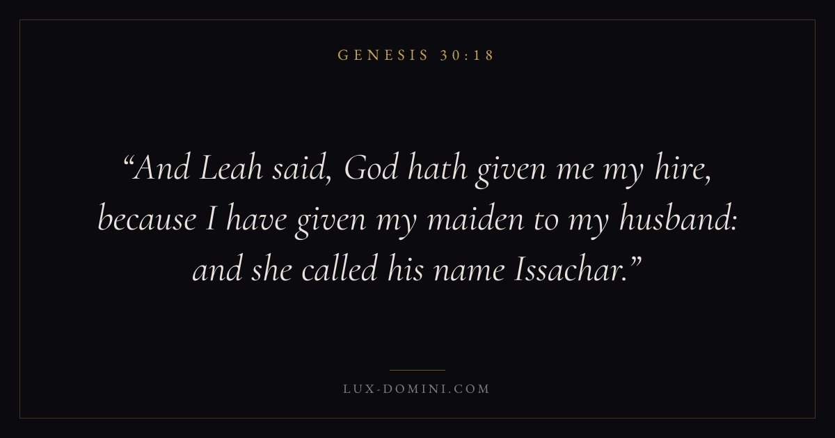 And Leah said, God hath given me my hire, because I have given my maiden to my husband: and she called his name Issachar.