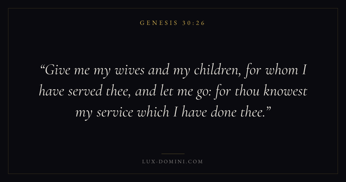 Give me my wives and my children, for whom I have served thee, and let me go: for thou knowest my service which I have done thee.