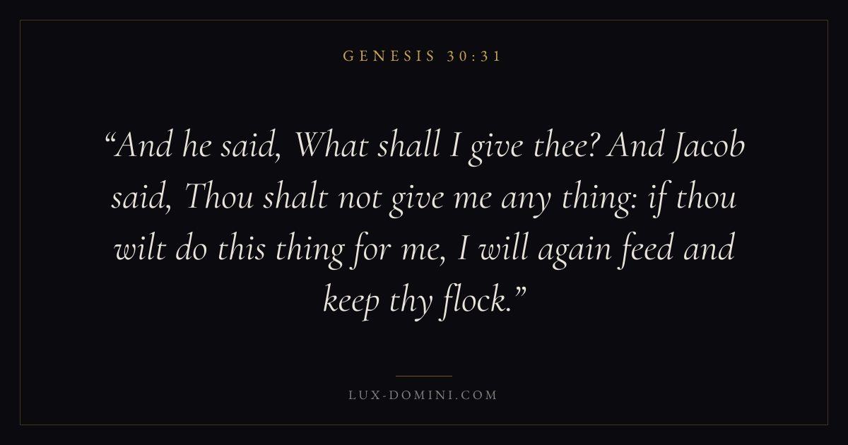 And he said, What shall I give thee? And Jacob said, Thou shalt not give me any thing: if thou wilt do this thing for me, I will again feed and keep thy flock.