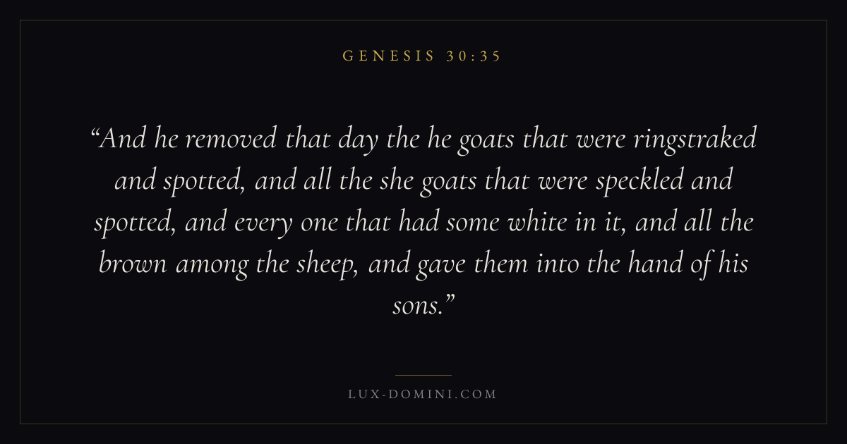 And he removed that day the he goats that were ringstraked and spotted, and all the she goats that were speckled and spotted, and every one that had some white in it, and all the brown among the sheep, and gave them into the hand of his sons.
