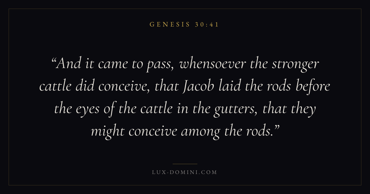 And it came to pass, whensoever the stronger cattle did conceive, that Jacob laid the rods before the eyes of the cattle in the gutters, that they might conceive among the rods.
