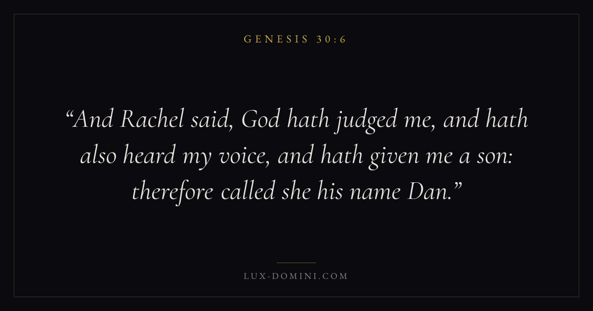 And Rachel said, God hath judged me, and hath also heard my voice, and hath given me a son: therefore called she his name Dan.