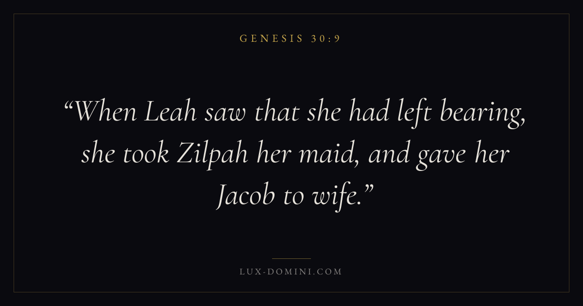 When Leah saw that she had left bearing, she took Zilpah her maid, and gave her Jacob to wife.