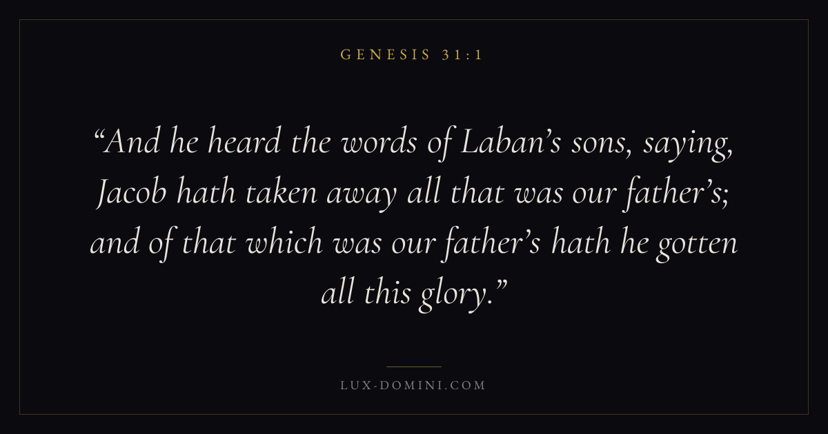 And he heard the words of Laban’s sons, saying, Jacob hath taken away all that was our father’s; and of that which was our father’s hath he gotten all this glory.