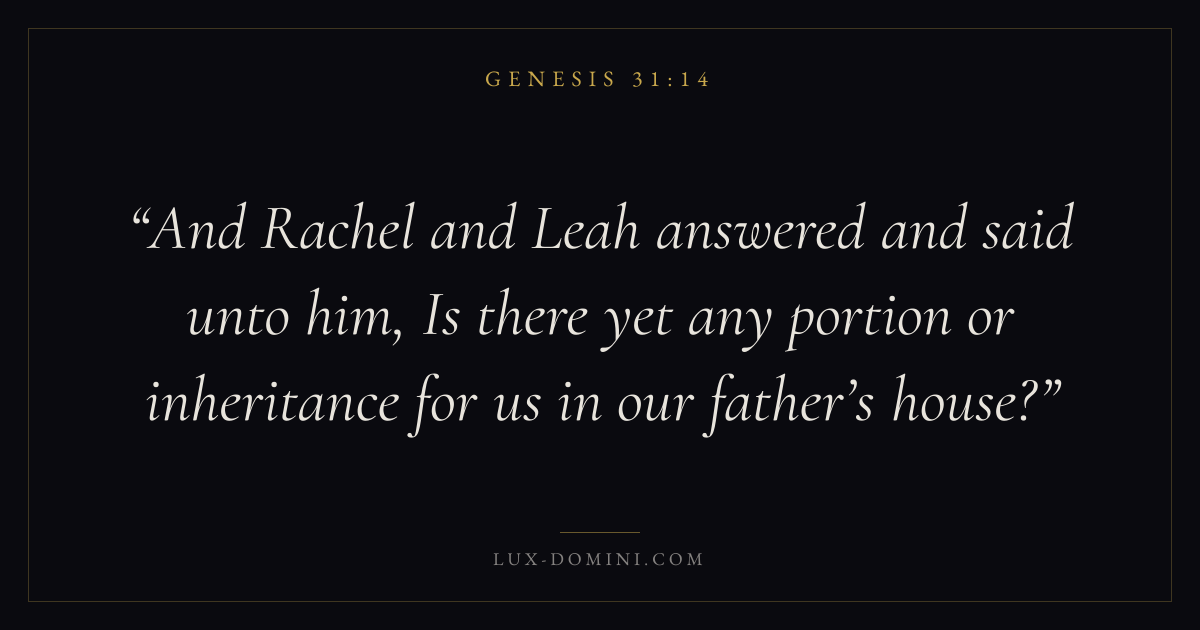 And Rachel and Leah answered and said unto him, Is there yet any portion or inheritance for us in our father’s house?