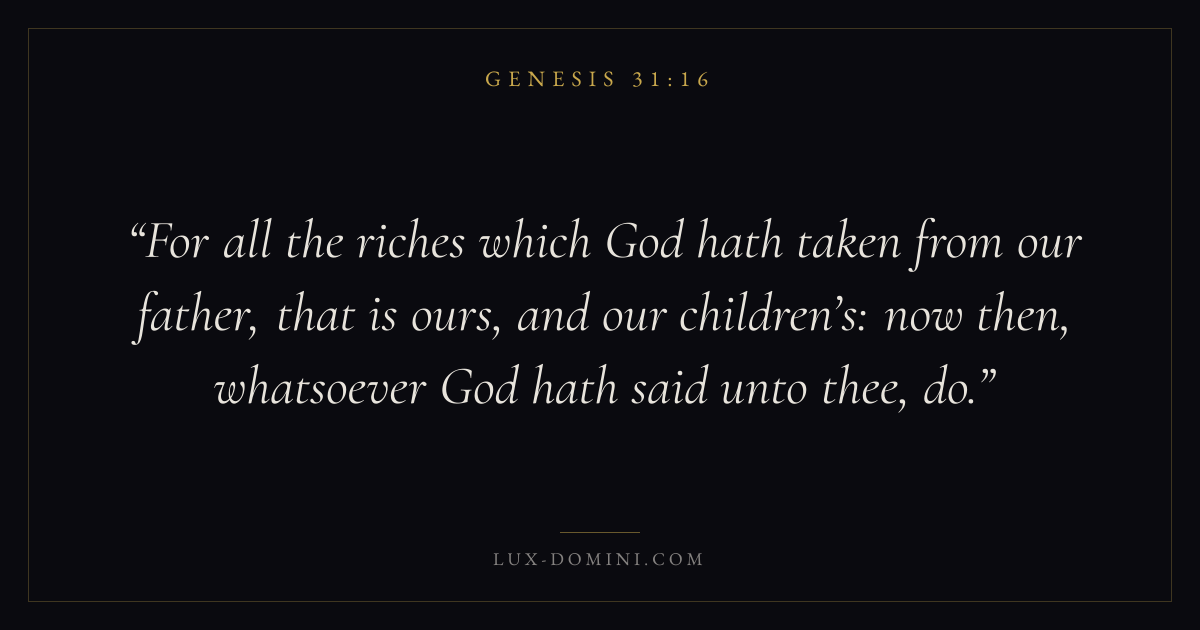 For all the riches which God hath taken from our father, that is ours, and our children’s: now then, whatsoever God hath said unto thee, do.