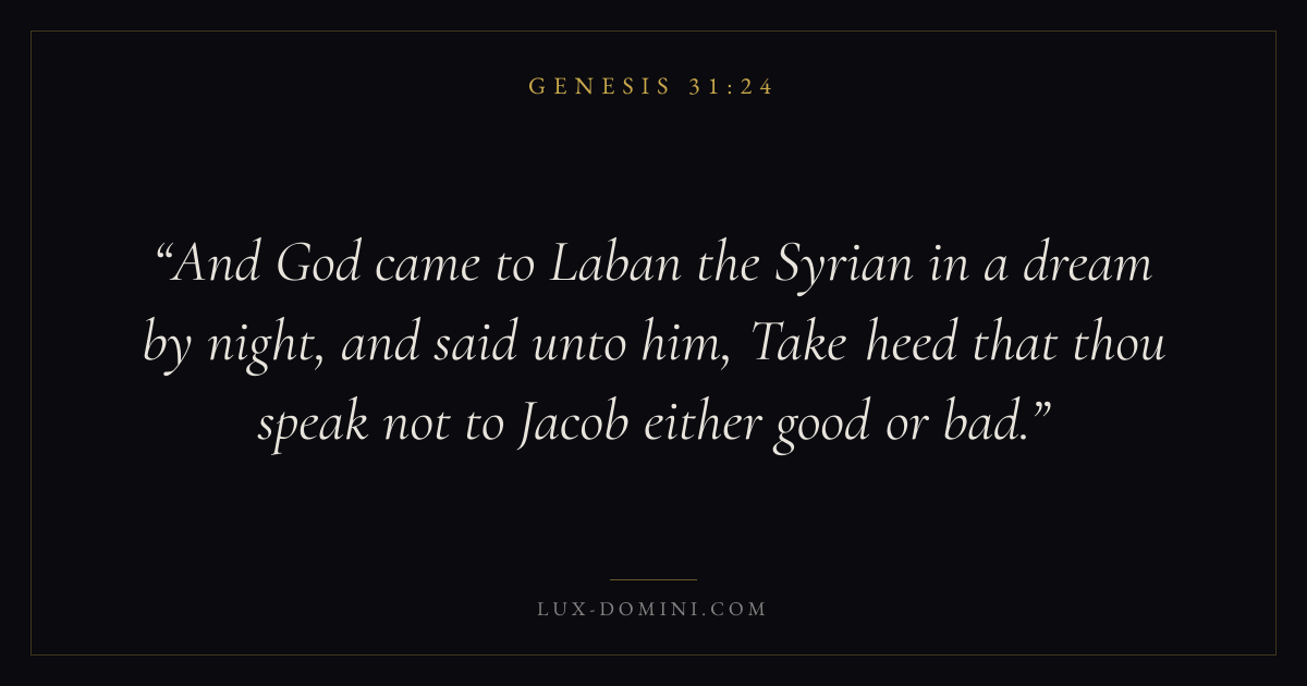 And God came to Laban the Syrian in a dream by night, and said unto him, Take heed that thou speak not to Jacob either good or bad.