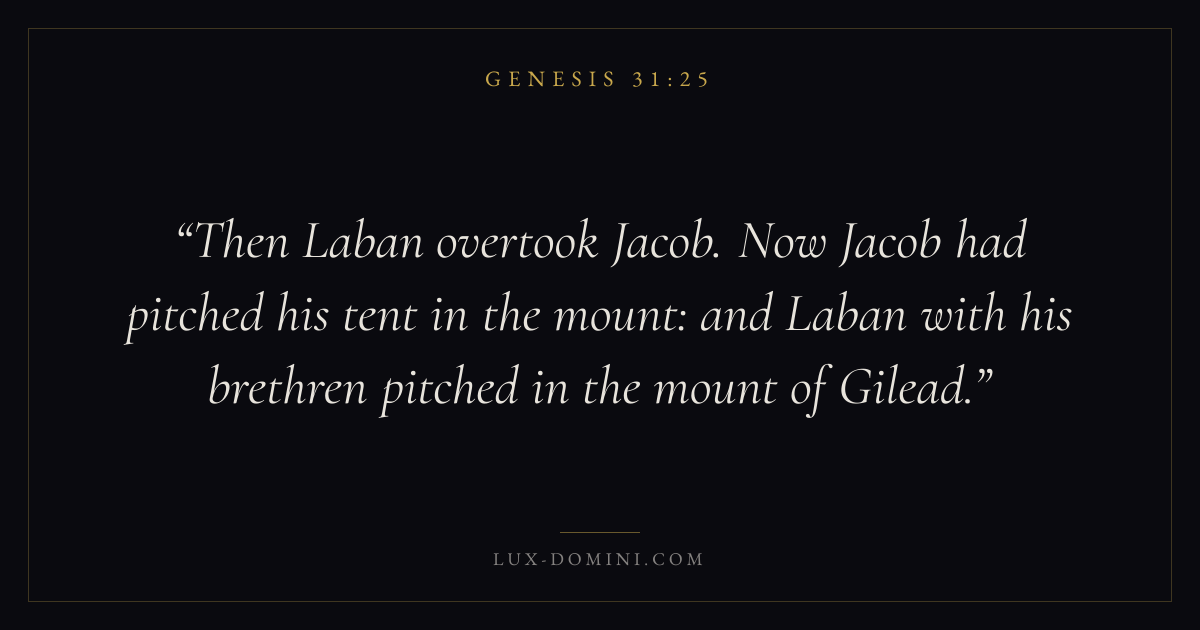 Then Laban overtook Jacob. Now Jacob had pitched his tent in the mount: and Laban with his brethren pitched in the mount of Gilead.