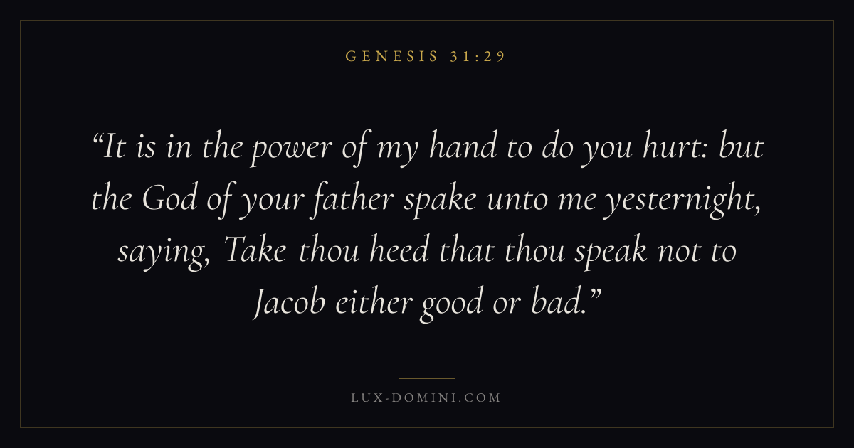 It is in the power of my hand to do you hurt: but the God of your father spake unto me yesternight, saying, Take thou heed that thou speak not to Jacob either good or bad.