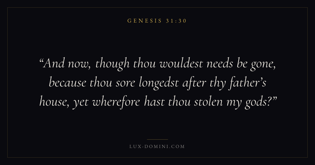 And now, though thou wouldest needs be gone, because thou sore longedst after thy father’s house, yet wherefore hast thou stolen my gods?