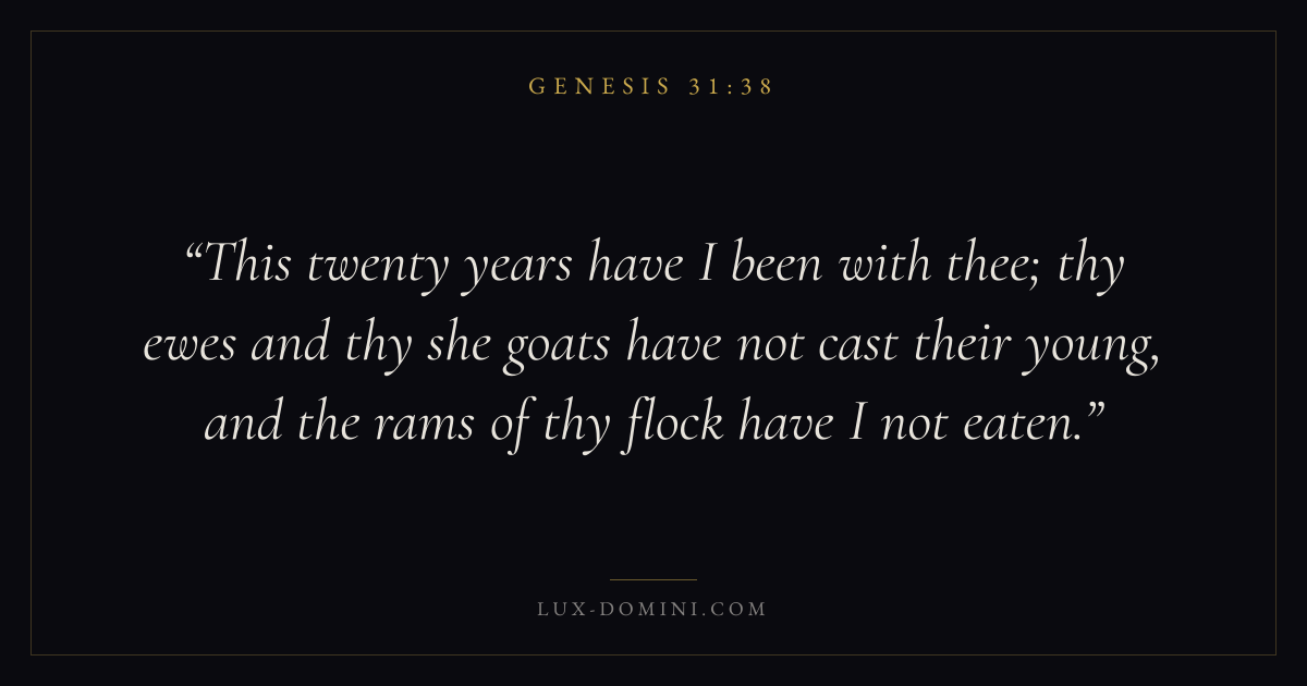 This twenty years have I been with thee; thy ewes and thy she goats have not cast their young, and the rams of thy flock have I not eaten.