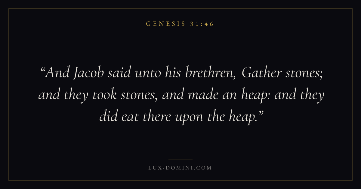 And Jacob said unto his brethren, Gather stones; and they took stones, and made an heap: and they did eat there upon the heap.
