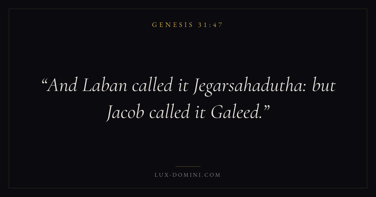 And Laban called it Jegarsahadutha: but Jacob called it Galeed.