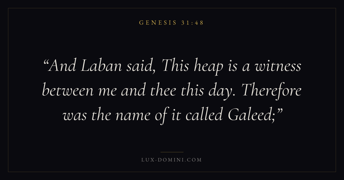 And Laban said, This heap is a witness between me and thee this day. Therefore was the name of it called Galeed;