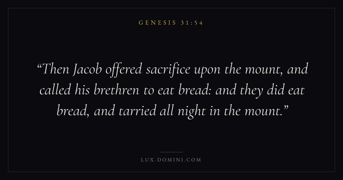 Then Jacob offered sacrifice upon the mount, and called his brethren to eat bread: and they did eat bread, and tarried all night in the mount.