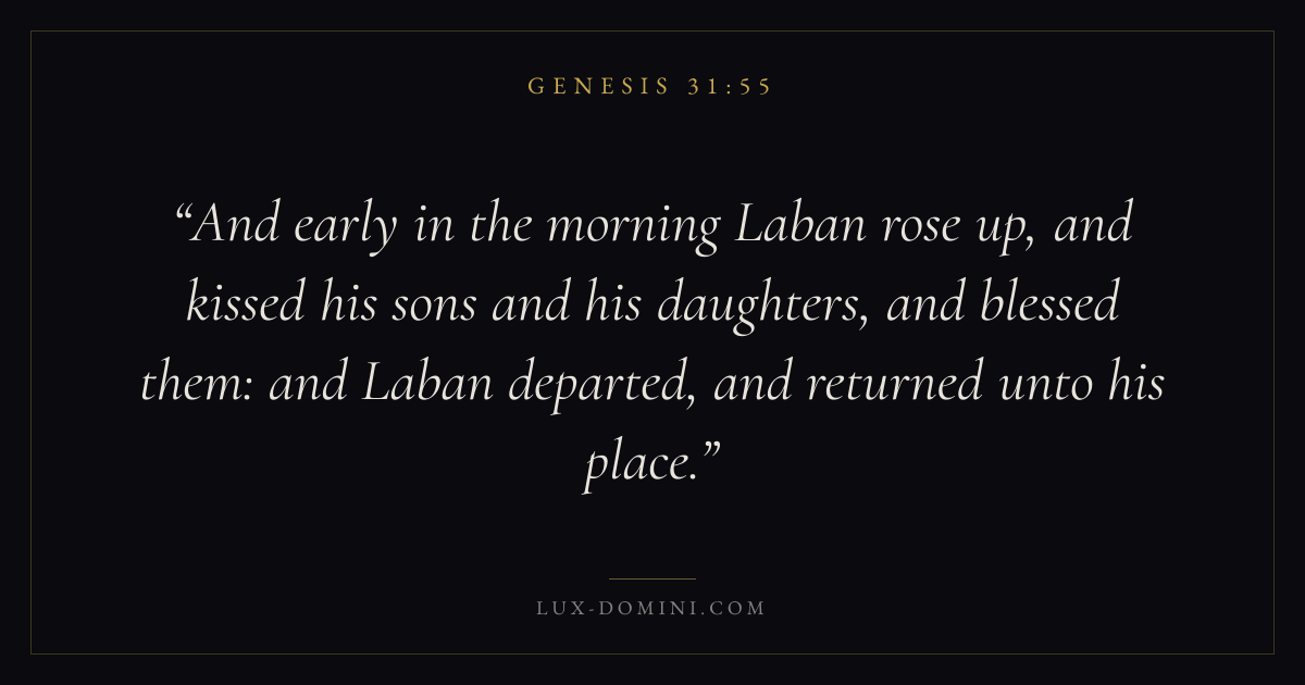 And early in the morning Laban rose up, and kissed his sons and his daughters, and blessed them: and Laban departed, and returned unto his place.