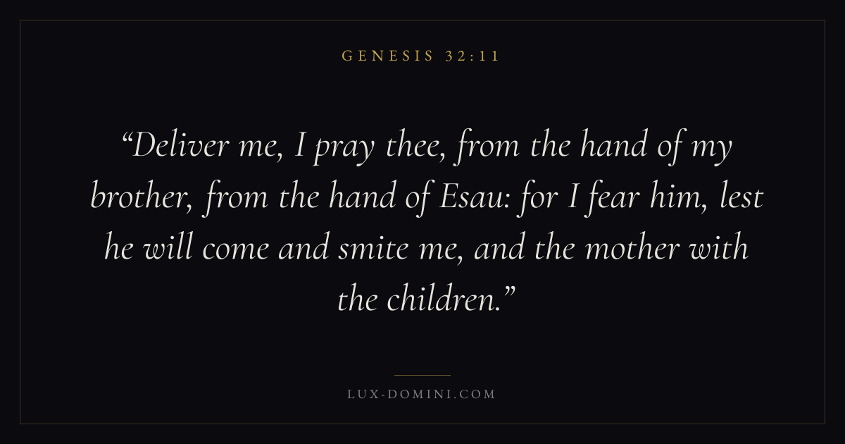 Deliver me, I pray thee, from the hand of my brother, from the hand of Esau: for I fear him, lest he will come and smite me, and the mother with the children.