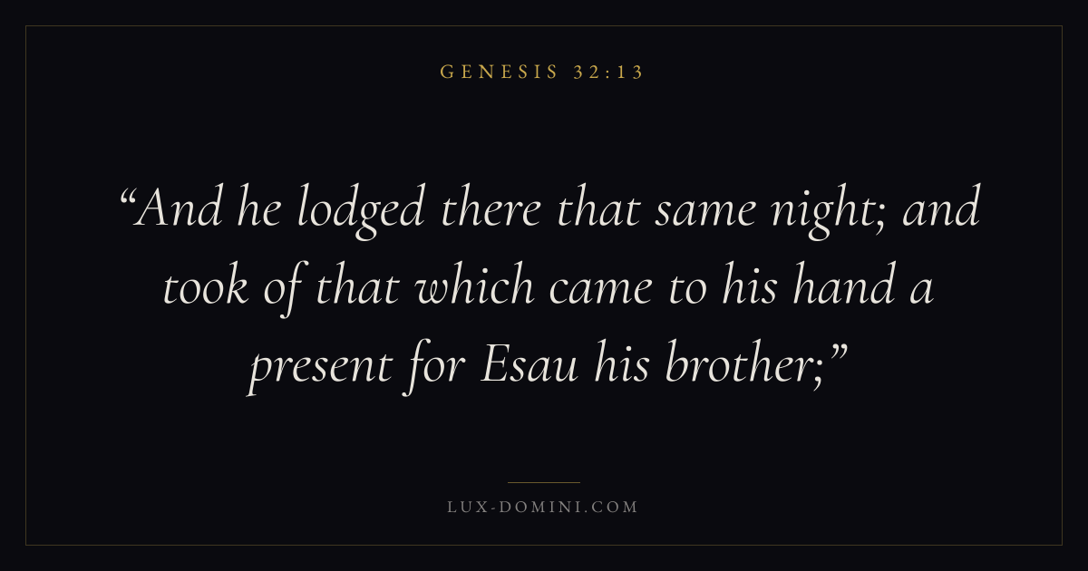 And he lodged there that same night; and took of that which came to his hand a present for Esau his brother;