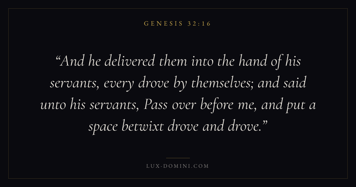 And he delivered them into the hand of his servants, every drove by themselves; and said unto his servants, Pass over before me, and put a space betwixt drove and drove.