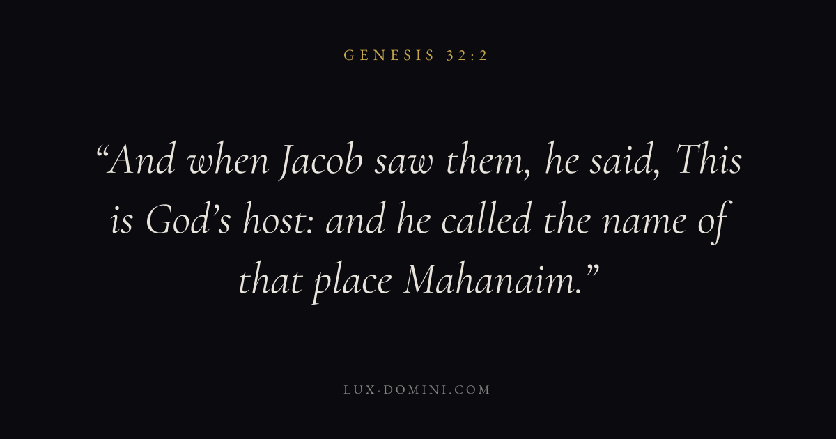 And when Jacob saw them, he said, This is God’s host: and he called the name of that place Mahanaim.