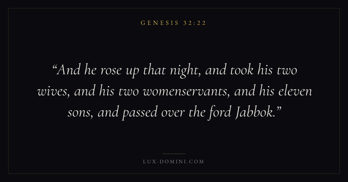 And he rose up that night, and took his two wives, and his two womenservants, and his eleven sons, and passed over the ford Jabbok.