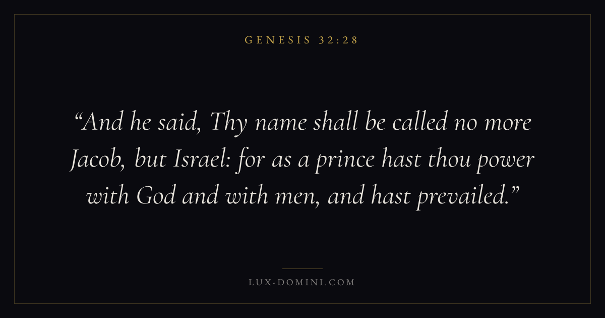 And he said, Thy name shall be called no more Jacob, but Israel: for as a prince hast thou power with God and with men, and hast prevailed.