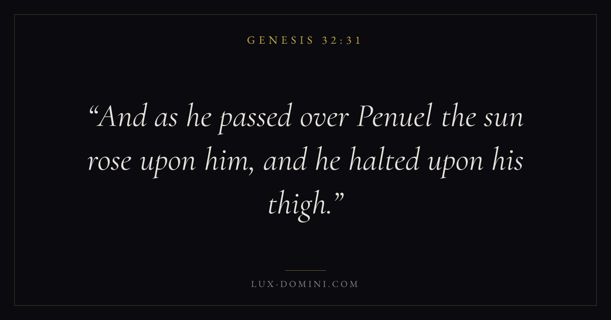 And as he passed over Penuel the sun rose upon him, and he halted upon his thigh.