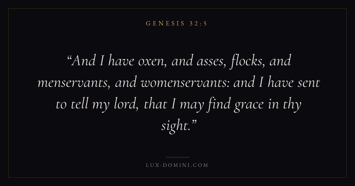 And I have oxen, and asses, flocks, and menservants, and womenservants: and I have sent to tell my lord, that I may find grace in thy sight.