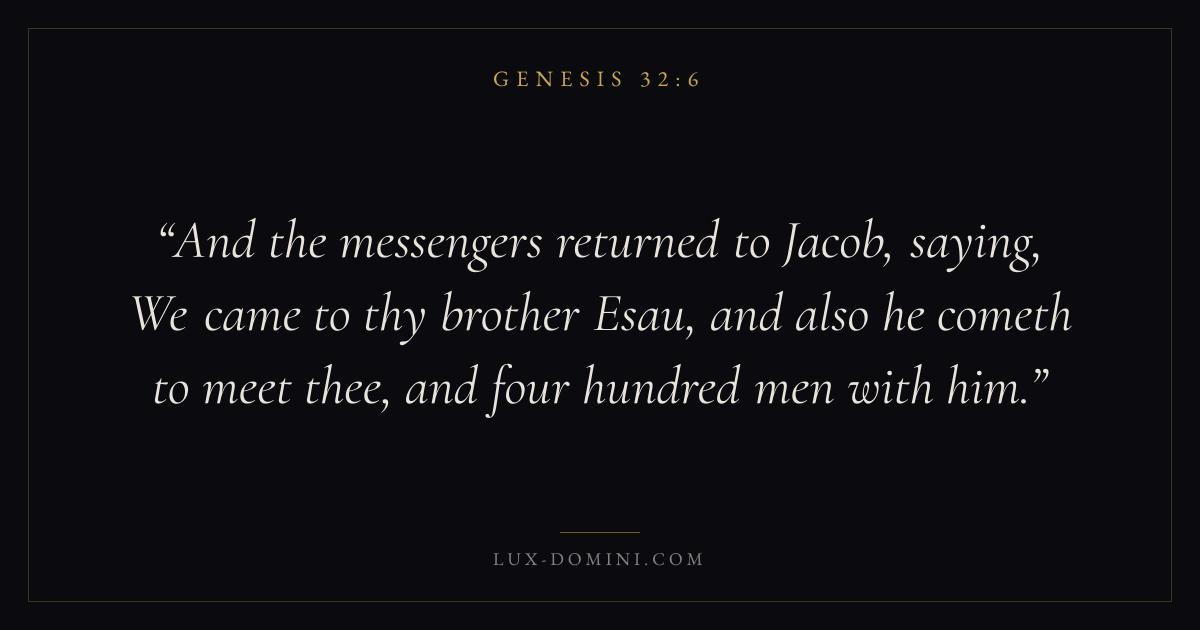 And the messengers returned to Jacob, saying, We came to thy brother Esau, and also he cometh to meet thee, and four hundred men with him.