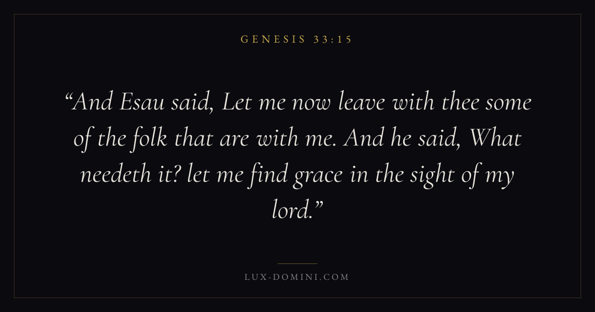 And Esau said, Let me now leave with thee some of the folk that are with me. And he said, What needeth it? let me find grace in the sight of my lord.